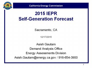 <Notice: Removed> 2015 IEPR Self-Generation Forecast PowerPoint PPT Presentation