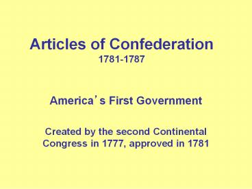 Articles of Confederation 1781-1787 PowerPoint PPT Presentation