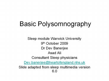 Basic Polysomnography PowerPoint PPT Presentation