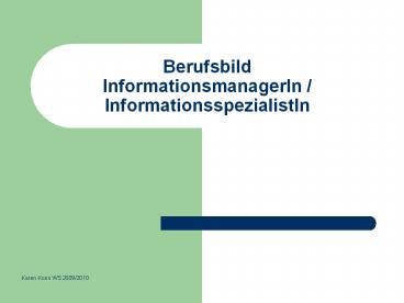 Berufsbild InformationsmanagerIn / InformationsspezialistIn PowerPoint PPT Presentation