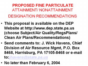Title: PROPOSED FINE PARTICULATE ATTAINMENT/ NONATTAINMENT DESIGNATION RECOMMENDATIONS