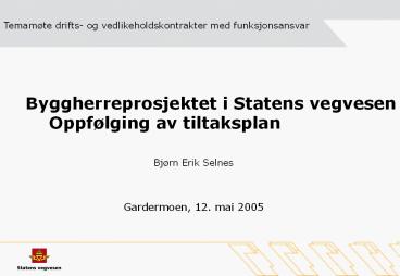 byggherrefunksjonen - Statens vegvesen ønsker å ta et aktivt