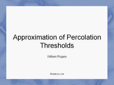 Approximation of Percolation Thresholds PowerPoint PPT Presentation