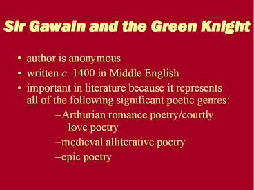or singing storyteller. - Like the Iliad and Beowulf, therefore, SGGK is
