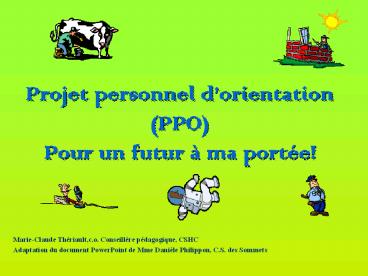 Projet personnel d orientation (PPO) Pour un futur ma port e! Marie-Claude Th riault,c.o. Conseill re p dagogique, CSHC Adaptation du document PowerPoint de ... – PowerPoint PPT presentation