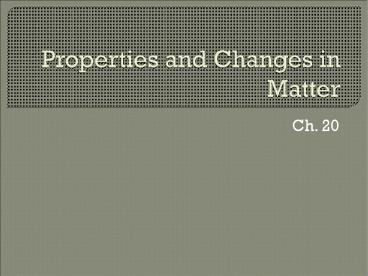 <Notice: Removed> Properties and Changes in Matter PowerPoint PPT Presentation