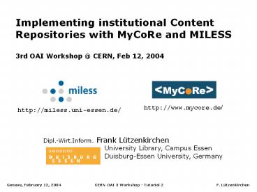 with MyCoRe and MILESS 3rd OAI Workshop _at_ CERN,