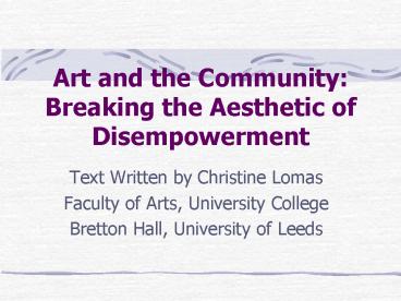 Art and the Community: Breaking the Aesthetic of Disempowerment PowerPoint PPT Presentation