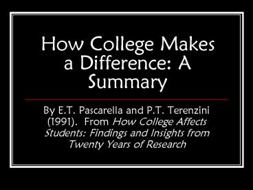 How College Makes a Difference: A Summary PowerPoint PPT Presentation