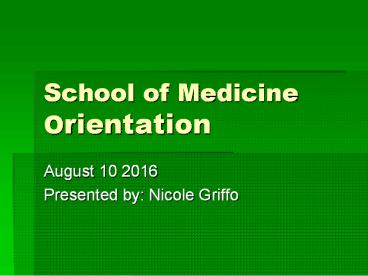 <Notice: Removed> School of Medicine Orientation PowerPoint PPT Presentation