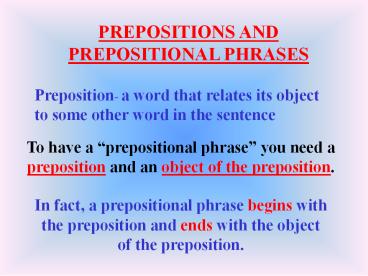 <Notice: Removed> PREPOSITIONS AND PREPOSITIONAL PHRASES PowerPoint PPT Presentation