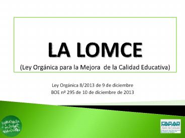 <Notice: Removed> LA LOMCE (Ley Org PowerPoint PPT Presentation