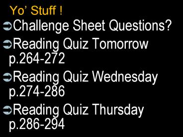 • Reading Quiz Tomorrow p.264-272