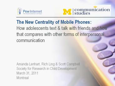 The New Centrality of Mobile Phones: How adolescents text PowerPoint PPT Presentation