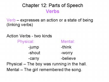 <Notice: Removed> Chapter 12: Parts of Speech Verbs PowerPoint PPT Presentation