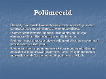 e. elementaarlülidest. - Polümeerideks loetakse ühendeid, mille ahelas on