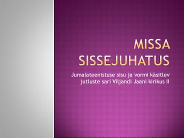 Missa sissejuhatus PowerPoint PPT Presentation