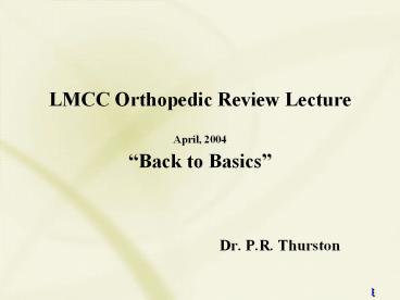 Title: LMCC Orthopedic Review Lecture