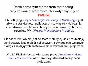 • Standard PMBoK nie jest de facto metodyka. Jak