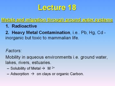 - Metals and migration through ground water systems