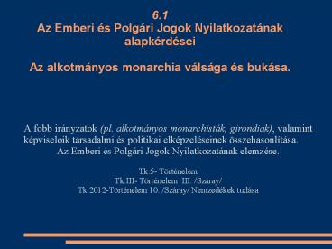 alapkérdéseiAz alkotmányos monarchia válsága és