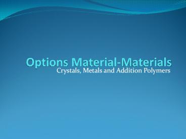 - Crystals, Metals and Addition Polymers