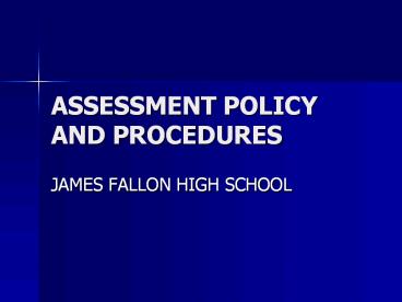 ASSESSMENT POLICY AND PROCEDURES PowerPoint PPT Presentation