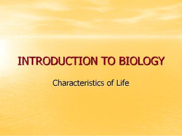INTRODUCTION TO BIOLOGY PowerPoint PPT Presentation