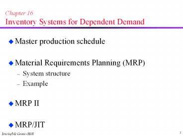 1Chapter 16Inventory Systems for Dependent Demand