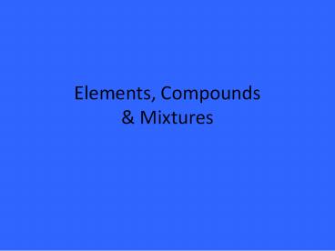Elements Compounds Mixtures
