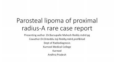 Parosteal lipoma of proximal radius-A rare case report PowerPoint PPT Presentation