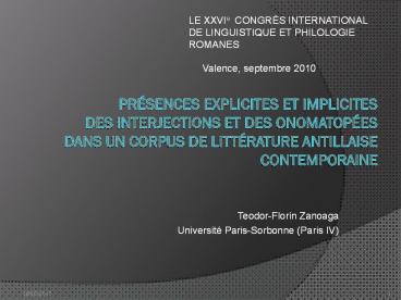 ET PHILOLOGIE ROMANES Valence, septembre
