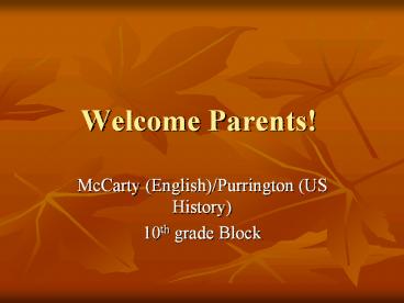Welcome Parents! PowerPoint PPT Presentation