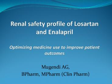 Renal safety profile of Losartan and Enalapril Optimizing medicine use to improve patient outcomes PowerPoint PPT Presentation