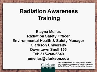 Title: Radiation Awareness Training