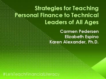 Title: Strategies for Teaching Personal Finance to Technical Leaders of All Ages