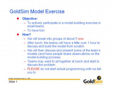 GoldSim Model Exercise PowerPoint PPT Presentation