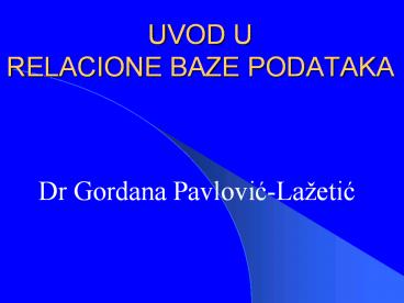 UVOD U RELACIONE BAZE PODATAKA PowerPoint PPT Presentation