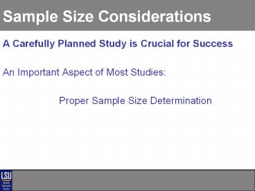 Sample Size Considerations PowerPoint PPT Presentation