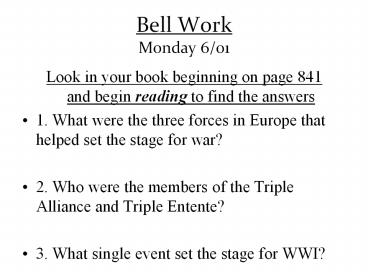 Bell Work Monday 6/01 PowerPoint PPT Presentation