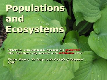 Populations and Ecosystems
