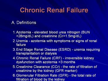 • Chronic Renal Failure (CRF) - irreversible kidney