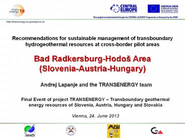 Bad Radkersburg 2 wells 22 l/s 78C Balneological and energy use