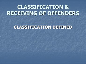 1CLASSIFICATION RECEIVING OF OFFENDERS