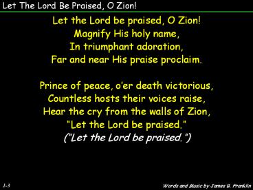 Let The Lord Be Praised, O Zion!