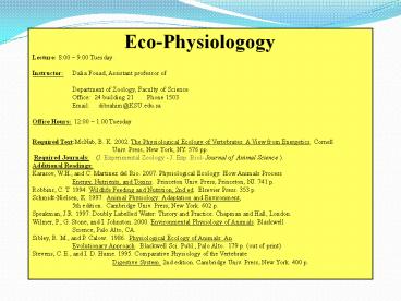 Eco-Physiologogy Lecture 800 9.00 Tuesday