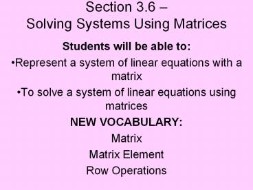 3Section 3.6 Solving Systems Using Matrices
