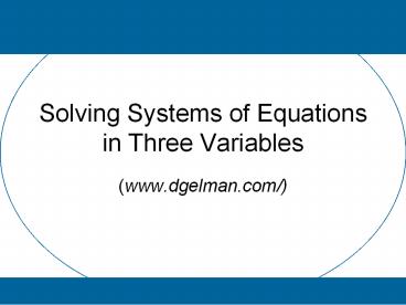<Notice: Removed> Solving Systems of Equations in Three Variables PowerPoint PPT Presentation