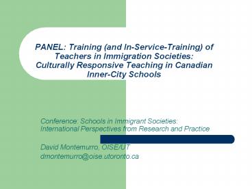 <Notice: Removed> PANEL:%20Training%20(and%20In-Service-Training)%20of%20Teachers%20in%20Immigration%20Societies:%20Culturally%20Responsive%20Teaching%20in%20Canadian%20Inner-City%20Schools PowerPoint PPT Presentation