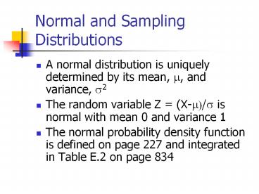 <Notice: Removed> Normal and Sampling Distributions PowerPoint PPT Presentation